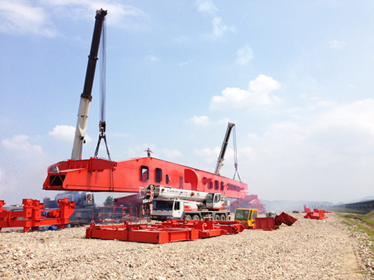 公司主要設(shè)備有:SLJ900T流動(dòng)式運(yùn)架一體機(jī)、SXJ900T/32M分體式架橋機(jī)及運(yùn)梁車、MG450T提梁機(jī)(跨度有35M~40M,起升凈高20~40M)、ME900T提梁機(jī)、SXJ550T/32M一跨式架橋機(jī)及運(yùn)梁車、SGTJ180T鋪架機(jī)等高鐵運(yùn)架設(shè)備。